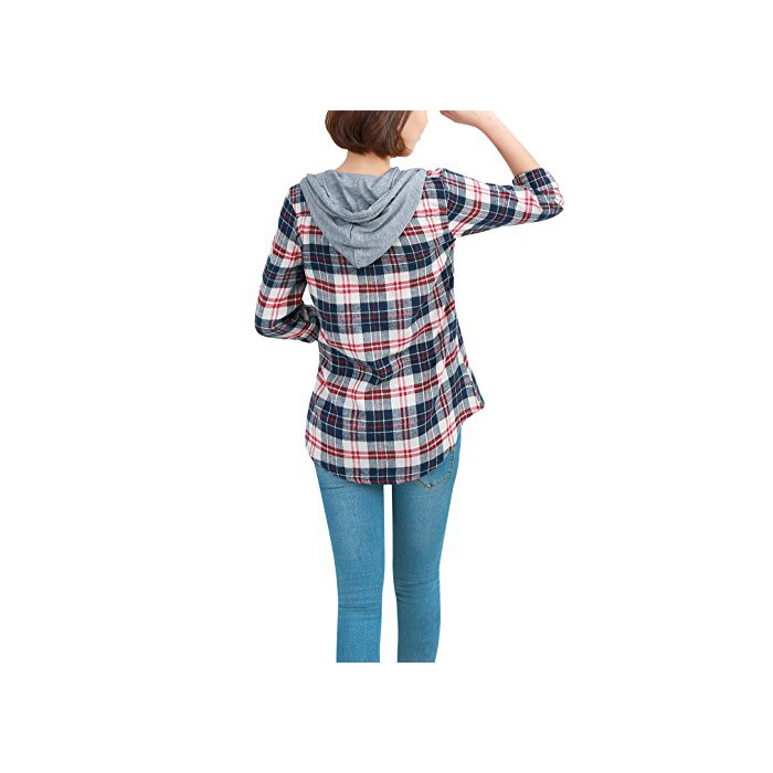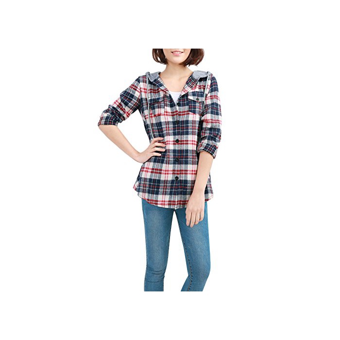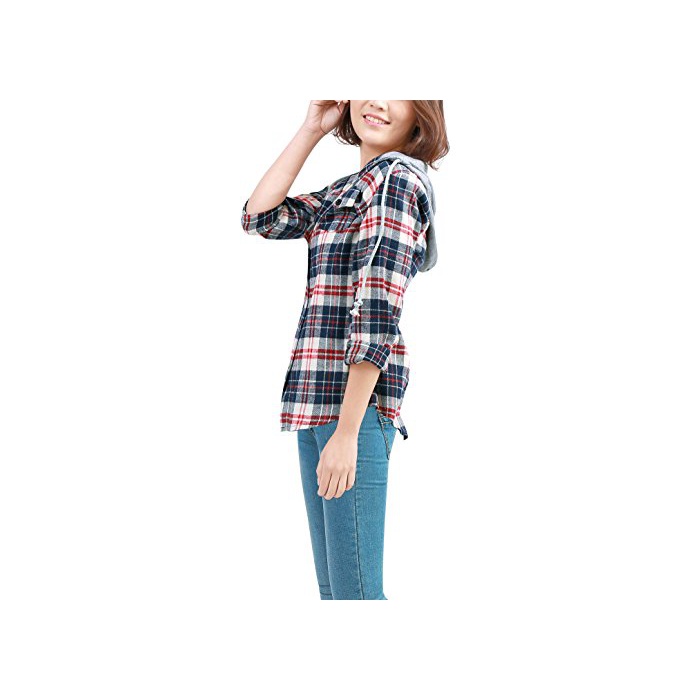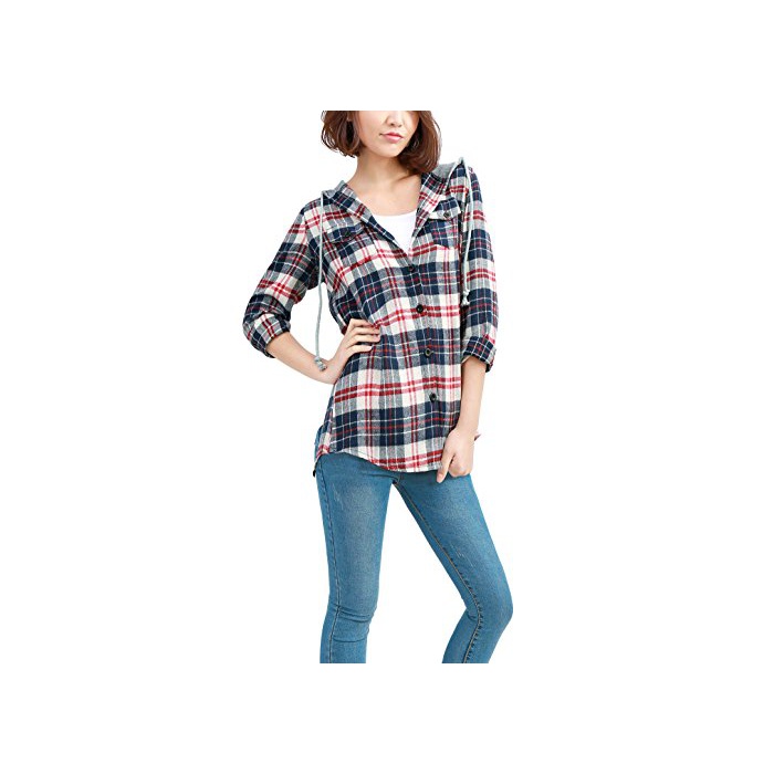 Uxcell 긴 소매 셔츠 싱글 breast 후드 부착 셔츠 캐주얼 셔츠 블라우스 버튼 커프스 XS 1 매들어감