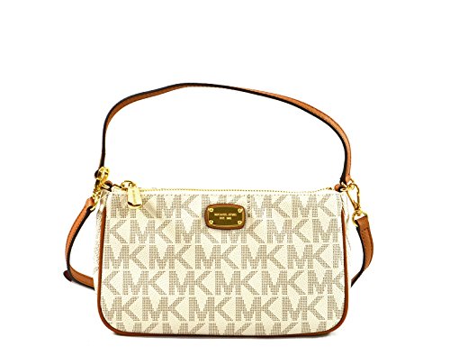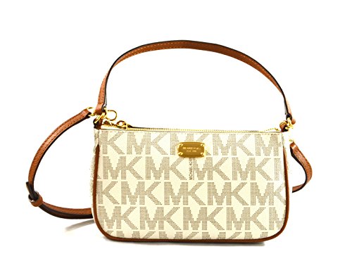 Michael Kors Jet Set Item Convertible Pouchette Crossbody Bag Purse Handbag (Vanilla/Acorn)