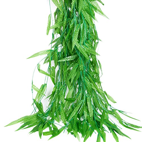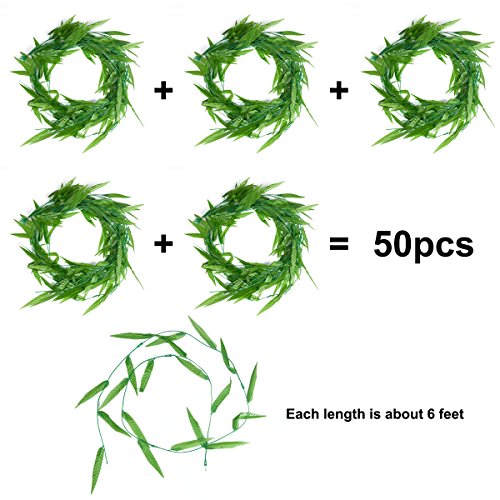 XGpie 50pcs 300 Feet Willow Rattan Wicker Twig Fake Leaves, Artificial Vine Greenery Garland Silk Swags Wall for Wedding Home Decor