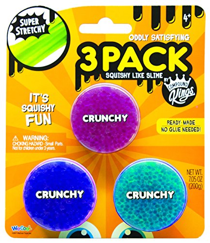 Unleash a world of creativity with Bobble Bitz, the new and best way to create your own little sculptures. You can make jewelry pieces, window clings, and more by just shaping your Bobble Bitz and letting them dry overnight. You can make shape after mold after sculpture with just a single tub of Bobble Bitz in assorted colors. Other molding or slime compounds are one consistent texture throughout and do not feature any cool sensory details. Bobble Bitz is a whole new spin on the senses it feels like nothing you've ever touched before. Squeeze it and squish it, you can even hear the little snapping and popping as the bitz collide with one another in your hand. Other gooey or sticky toys can often stick to hands, fabrics, and surfaces, but Bobble Bitz really only sticks to itself. Even if you separate it out bit by bit, just touch them back together and they stick! Roll it in your hands and squeeze it between your fingers, but as soon as you remove it, no residue! It's an amazing, virtually mess free molding toy option. Bobble Bitz, WeCool Toys Crunchy molding compound, can be used as a crunchy slime but also doubles as a craft! Just shape it to one of the many molds included in our sets, or make your own free form creations and let them dry overnight. For continuous use, just leave it in the air tight container to keep it as a crunchy slime. Package contains (3) Compound Kings Bobble Bitz Crunchy Molding Compound in Assorted Colors from the Makers of Compound Kings Squishy Like Slime. Colors may include pink, teal, yellow, purple, blue or orange. Recommended for children ages 5 years and older.Feature