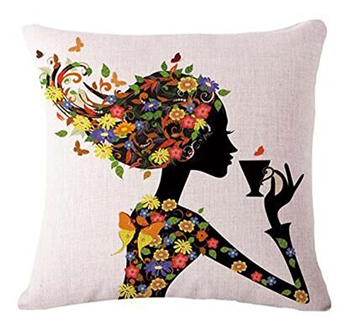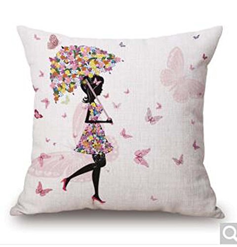 Cotton Linen Girl with Pink Wing Elves and Butterflies New Decorative Pillowcase Throw Pillow Cushion Cover Square 18" 18" Home Life ¡ (Umbrella)