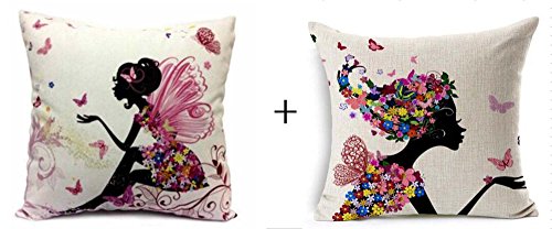 1 set 2 pcs Flower Fairy Girl with Pink Wing Elves and Butterflies New Decorative Pillowcase Throw Pillow Cushion Cover Square 18" 18" Home Life ¡ (3)