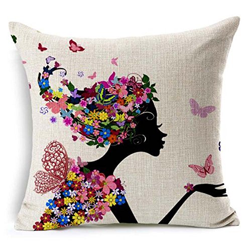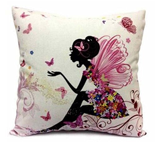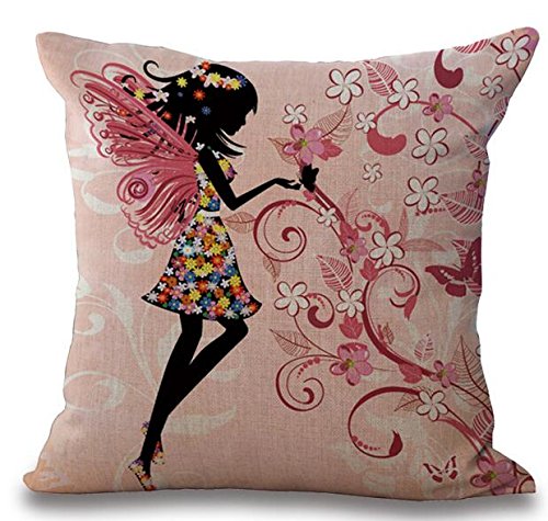 Cotton Linen Girl with Pink Wing Elves and Butterflies New Decorative Pillowcase Throw Pillow Cushion Cover Square 18" 18" Home Life ¡ (18)