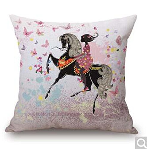 Cotton Linen Girl with Pink Wing Elves and Butterflies New Decorative Pillowcase Throw Pillow Cushion Cover Square 18" 18" Home Life ¡ (horse racing)