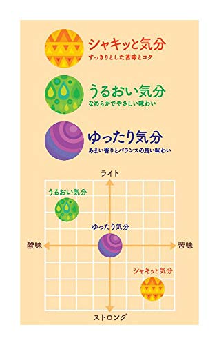 ◆シャキッと気分…カフェイン多め うるおい気分…ポリフェノール多め ゆったり気分…カフェインひかえめ。