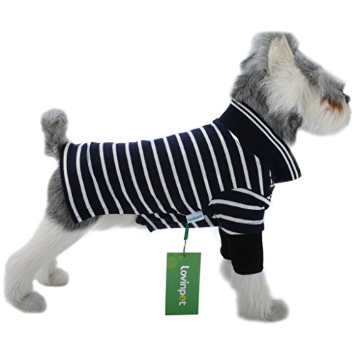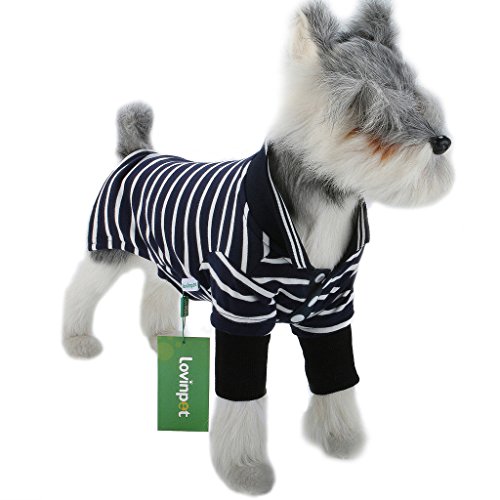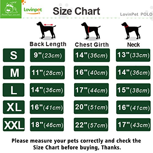 Studio : Lovinpet Publisher : Lovinpet Binding : Misc. Product Description Popping collars, showing off and breaking hearts will become the norm when you dress your pup up in one of these premium dog shirts by LovinPet. The striped pattern featured on the collared shirt is gender-neutral and fashionably versatile, making it a favorite piece for pet styling any season of the year. Since the striped dog shirts are machine washable and made out of 100% cotton, they are also seriously soft, super strong and quite easy to care for. We make it a point to offer the ribbed cotton dog tops in assorted colors and various sizes. Make your selections and place an order today! DOGGIE POLO SHIRT SIZE CHART: S (Back Length:9",Chest:14",Neck:13") M(Back Length:11",Chest:16",Neck:14") L(Back Length:14",Chest:17",Neck:15") XL(Back Length:16",Chest:20",Neck:16") XXL(Back Length:18",Chest:22",Neck:17") 0