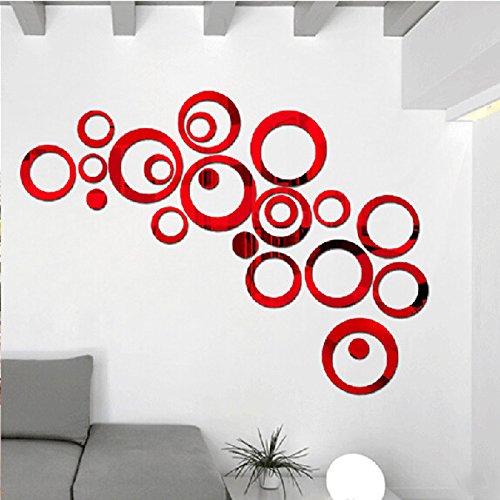 Alrens(TM)Red 22pcs Rounds Dots Circles Mirror Surface Acylic Crystal Wall Stickers DIY 3D Home Decal Living Room Murals Wallpaper Decor Art adesivo de parede Decoration Removable