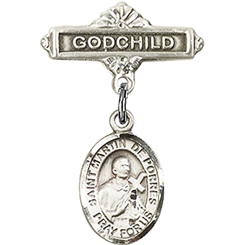 -. Title : Sterling Silver Baby Badge with St. Martin de Porres Charm and Godchild Badge Pin 1 X 5/8 inches