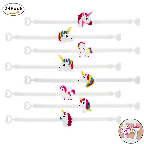 Package contains 24 pieces unicorn wristband bracelets. (8 styles. 3 pieces of each style.)
