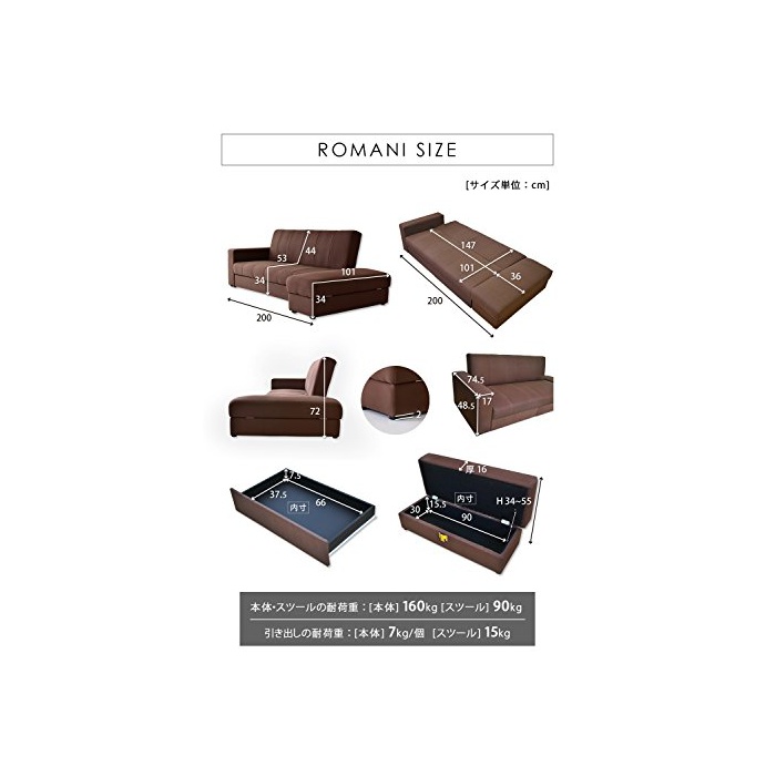 【멀티 기능 소파】모던인 디자인과 많은 기능성을 소유,충분하게목 테두리를 사용한 본격적인 확실히 소파 베드입니다.팔꿈치 걸이 stool은 좌우 어느 쪽에의 부착도 가능하기 때문에,방 에 따라 변경 를 할 수 있습니다.