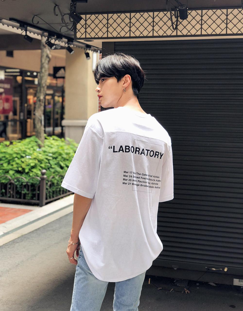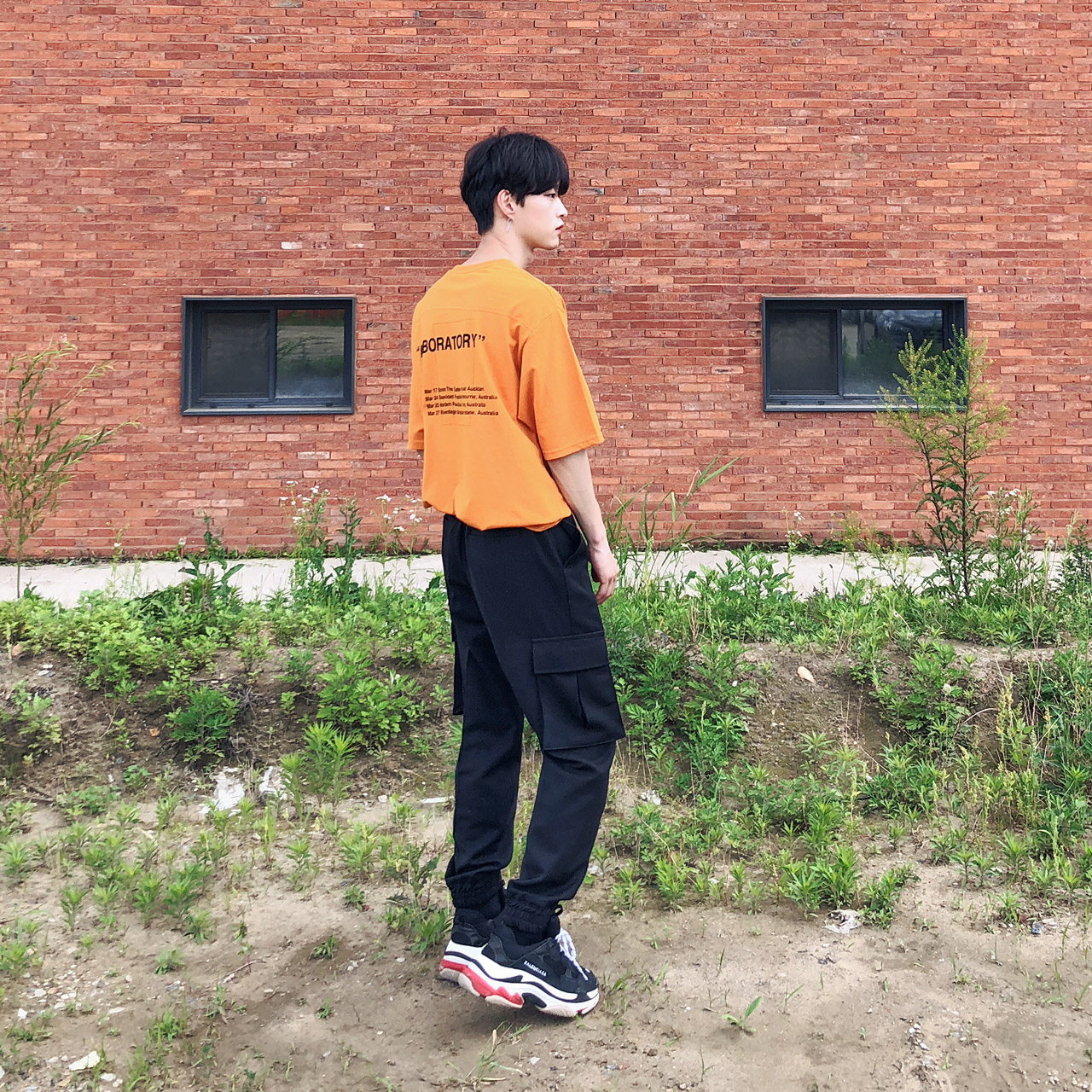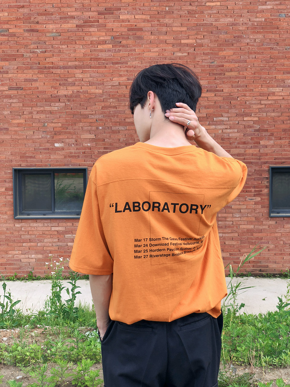 포켓 절개 레터링 반팔티셔츠