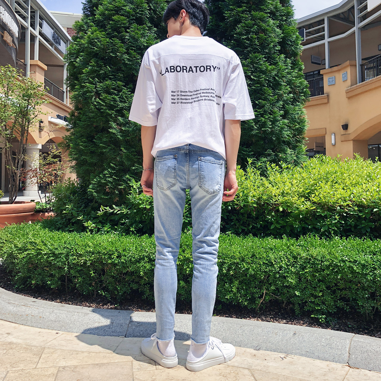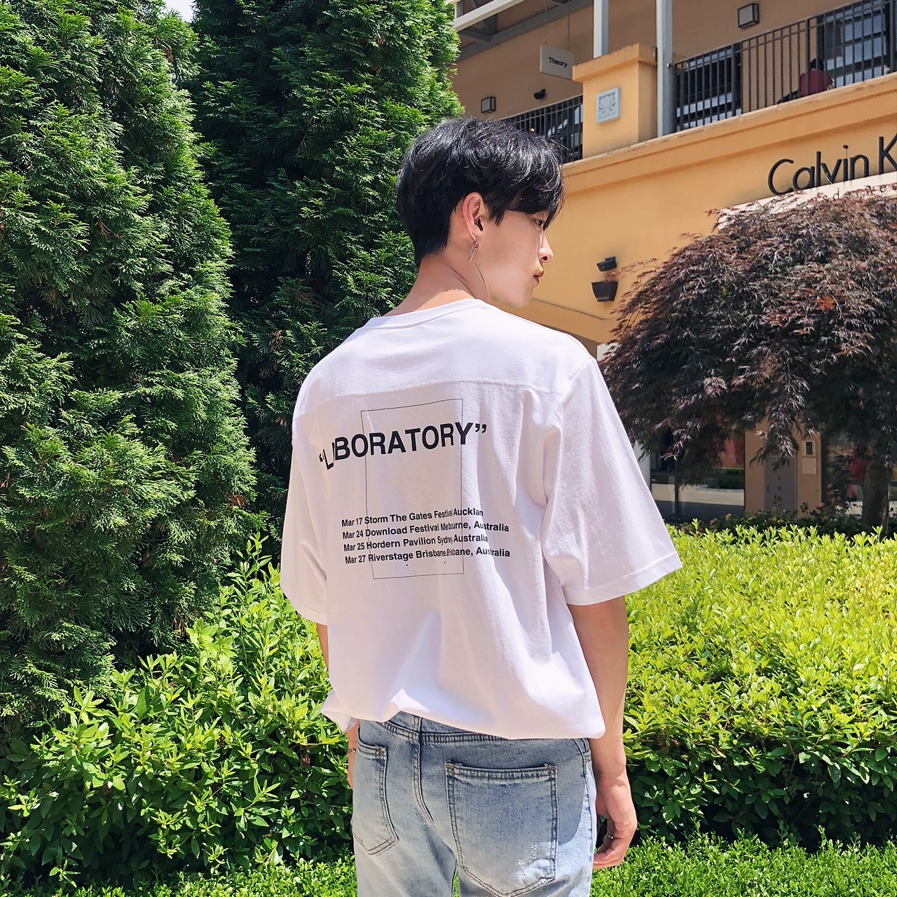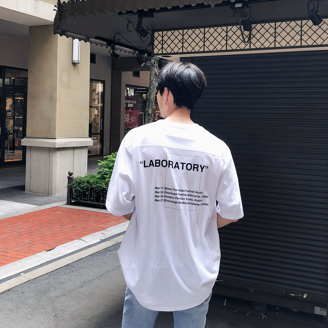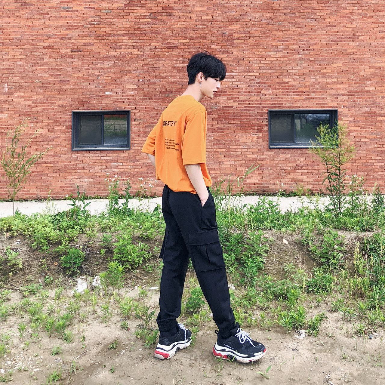포켓 절개 레터링 반팔티셔츠