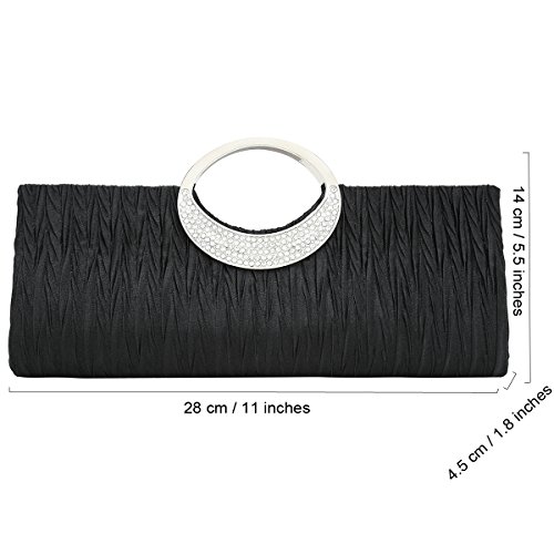 -. Feature : Enhance any day or evening event with this feminine clutch purses for women. It combines sleek, pleated satin with a beautiful sliver Rhinestone detailed moon handle and ingenious magnetic snap to make a truly elegant evening clutch. / Timeless and delightful evening bags and clutches for women is the perfect day-to-evening companion that brings glamour to any outfit, it can be carried by hand, worn cross body or on the shoulder, also can carry this clutch like a purse thanks to its removable drop-in chain strap for multiple convenient carrying options. It opens up to reveal a beautiful lining. / PERFECT FOR DAY TO NIGHT CHIC, here is indispensable evening bags to have and to hold, through dressy season and beyond. Purses for women is ideal companion for all occasions, prom, dating, wedding, cocktails, ball, formal, celebration, party, reunion, dinner parties. Feminine and functional evening bags and clutches will also be a beautiful gift for your loved ones, daughter, mother, girlfriends, bridesmaids, friends. / This evening bag comes with O shape chain strap of drop 21.5 inches, WON'T SNAP your long hair or graceful dress. / Dimensions: W11 x H5.5 x D1.8 inches or W28 x H14 x D4.5 cm, true evening bag clutch size, just right for taking to a wedding, offers ample storage for essential accouterments, large smart cell phone, iPhone 8, makeup, glasses, wallet, tissues, lipstick, blotters, battery charger.