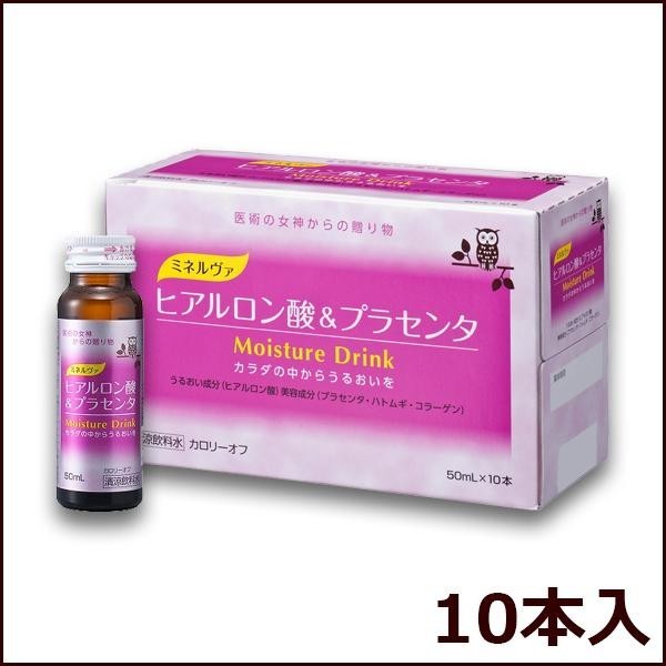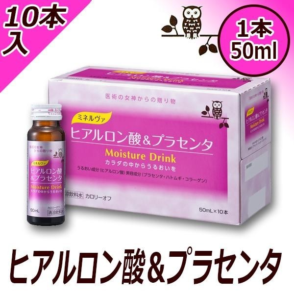 | 栄養成分 | 【1本50mL中】 (主な成分量)低分子ヒアルロン酸:60mg、プラセンタエキス純末:135mg(豚プラセンタとして3500mg)、コラーゲンペプチド:100mg、ハトムギ抽出液:500mg (栄養成分表示)エネルギー:4kcal、たんぱく質:0.2g、脂質:0g、炭水化物:5g、ナトリウム:33mg(食塩相当量:0.08g) |