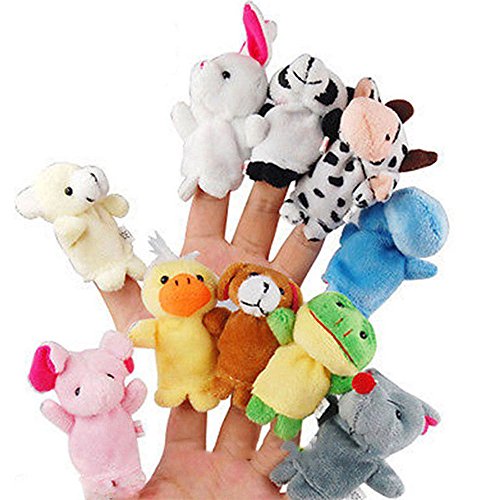?Features: The item is a set of 10pcs different-animal finger puppets toys, which include one hippopotamus, elephant, rabbit, duck, cattle, dog, panda, bear, frog and mouse, and are made of durable soft velvet cloth for comfortable touch. All animal puppets with hands and feet, small and cute, so you can tell a lot of stories about thoese animals to your children. Therefore, it is really a wonderful animal finger puppets dolls set for choice.