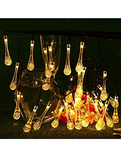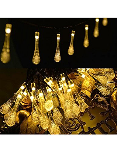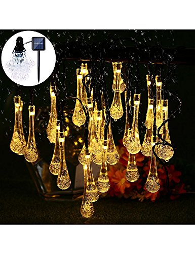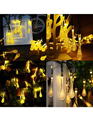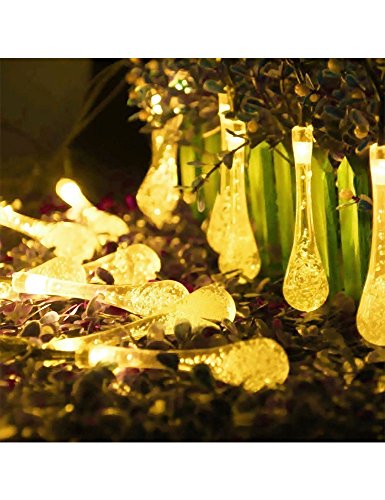 Valentinyii LED Solar String Lights - 20 ft 30 LED Water Drop Fairy Solar lights, Waterproof Solar Lights for Outdoor/Indoor Home, Garden, Lawn, Christmas, Wedding and Holiday Decoration (warm white)