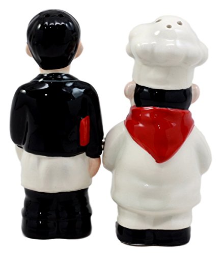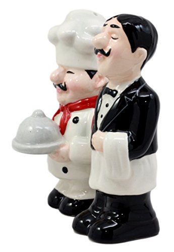 Ebros Gift Food Service Head Chef And Waiter Salt & Pepper Shakers Ceramic Magnetic Figurine Set 4.25"H