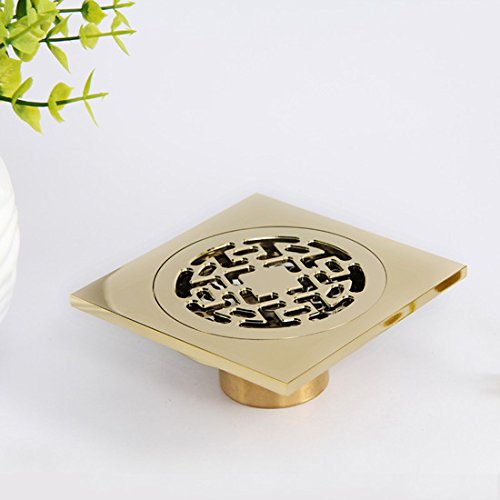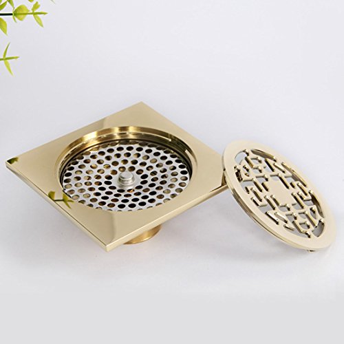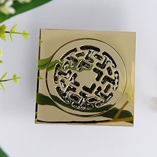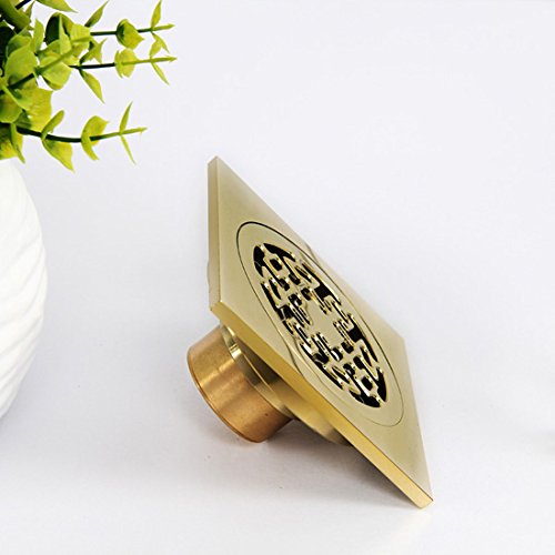Classic Square Polished Brass Finish Floor Drain Cover Engraving Kitchen and Bathroom Floor Drain Shower Ground Drainer Gold Color Filter Floor Drain Strainer