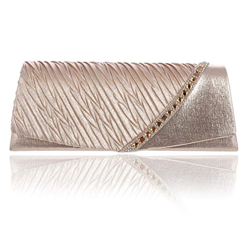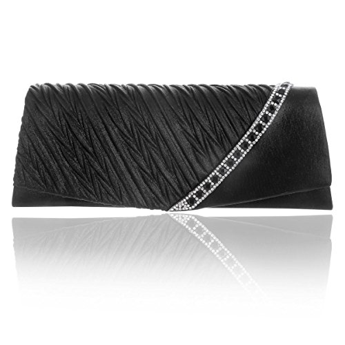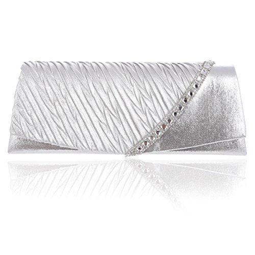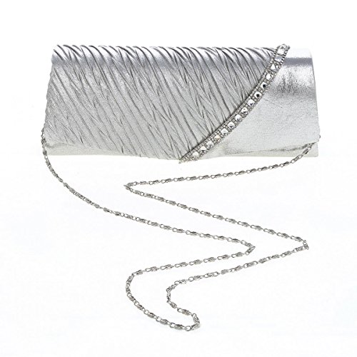 This graceful evening style clutch is frosted with glistening rhinestones that will make you glow during your special occasion. Pleated with crystal front detail makes it more charming.Inside can easily fit a cell phone, wallet, compact mirror, lip gloss, and other small things.Conveniently, you can spend the night hands free with the detachable chain that is included.Measurement is app 26x7x10cm(10.23x2.75x3.93inch).The long chain size:118cm (46.45inch)Feature