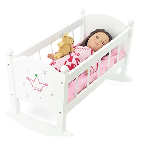-. Title : Baby Doll Cradle or Crib Rocking Furniture | Fits Baby Dolls and 18 Inch American Girl Dolls | Includes Mattress & Quilted Bedding