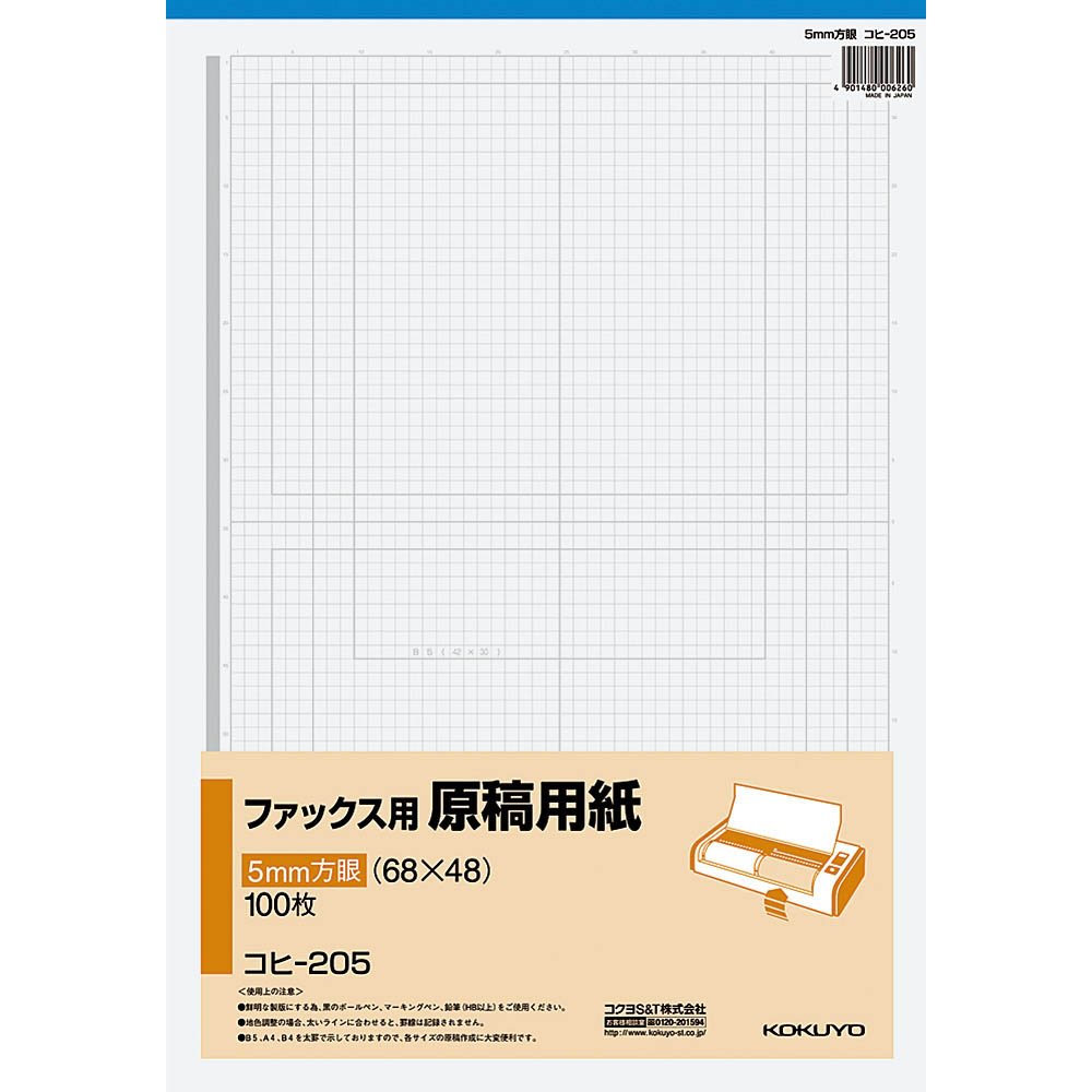 100 pieces of Kokuyo fax for writing paper 5mm squares [Kohinoor-205N] (japan import)