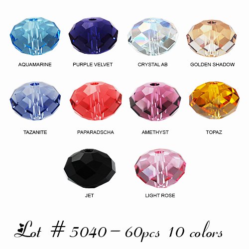 Wholesale Lot 60 pcs 8mm Swarovski Rondelles #5040 Crystal Beads. 10 colors (#1).
