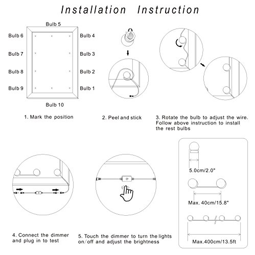 13.5ft/4m in full length makes it fit most mirrors. Excess wires can be hidden under the bulbs to keep your mirror neat after installation. The extra bulbs can be cut off .