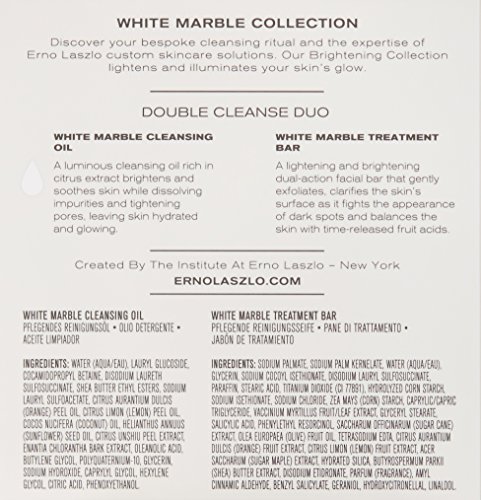 Double Cleanse on the go. Double the whitening every time you cleanse with our most brightening formulas: White Marble Cleansing Oil (2 fl.oz.) and White Marble Treatment Bar (1.7 oz.).. White Marble Cleansing Oil Pure radiance. This gentle, luxurious Cleansing Oil dissolves impurities and tightens pores all while leaving skin brighter, hydrated and glowing—never tight or dry. It’s the first step to noticeably brighter skin. White Marble Treatment Bar Bright and balanced. This creamy cleansing bar boasts smoothing fruit acids to gently exfoliate and clarify skin’s surface, while time-released brighteners fight discoloration and excess melanin (the source of hyperpigmentation)Feature