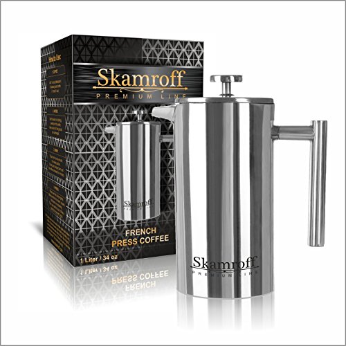 -. Title : Skamroff Premium Stainless Steel French Coffee Press – Double Wall, Keep Warm and Safe for Making Perfect Coffee or Tea – Size: 1L, 34oz, 8 Cups