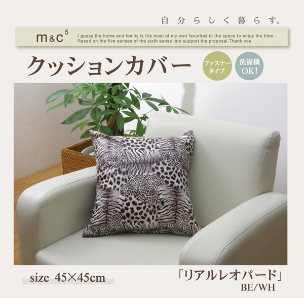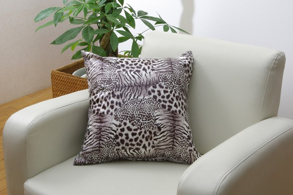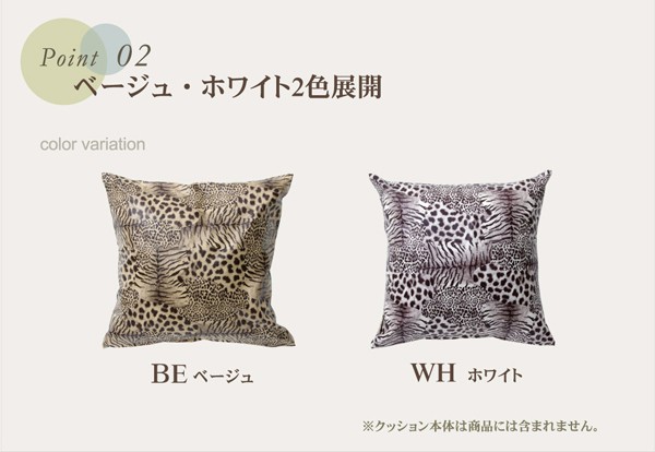 ■クッションカバー 約45×45cm レオパード/ホワイト[当ページ]