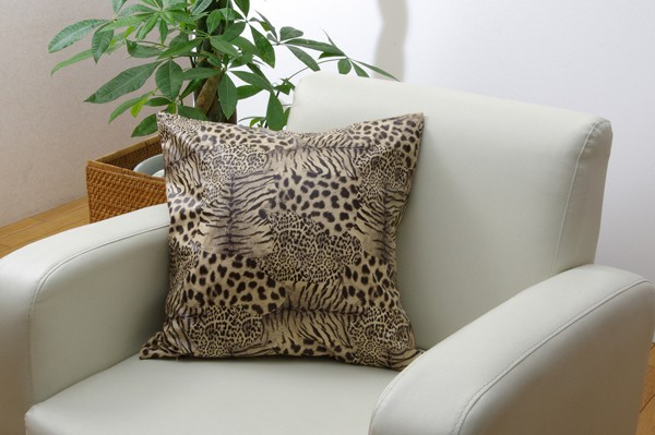 ■クッションカバー 約45×45cm レオパード/ベージュ