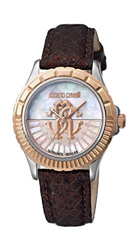 Roberto Cavalli LOGO DIAL Women's Swiss-Quartz Brown Leather Strap Watch