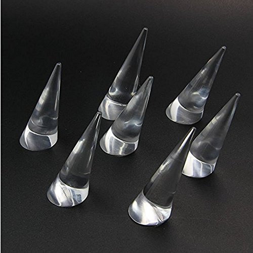 HUELE Pack of 10 Clear Jewelry Ring Display Holder Stand Cone Shape Acrylic Transparent