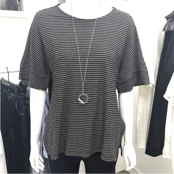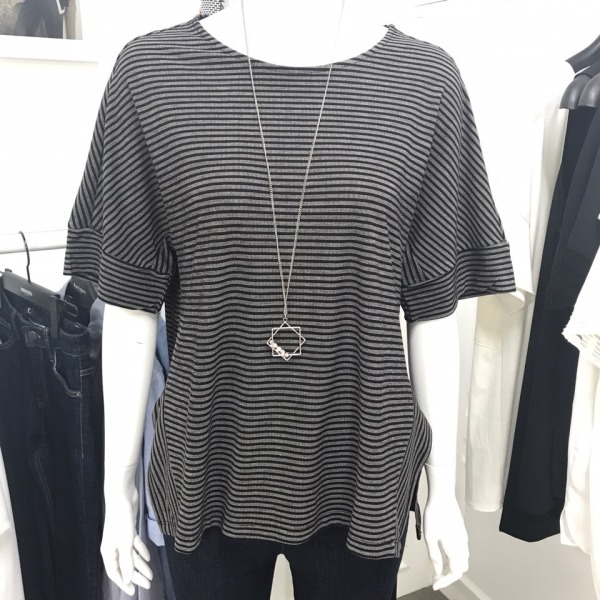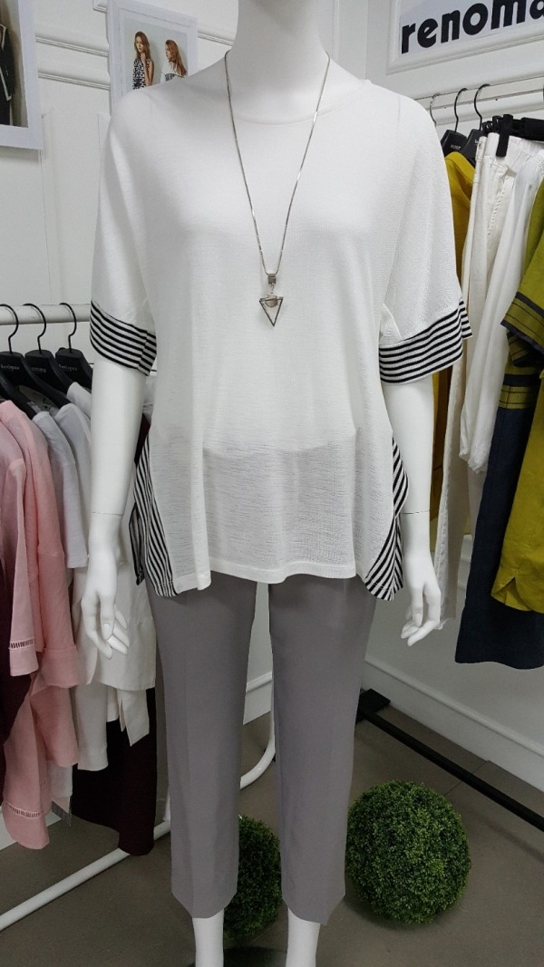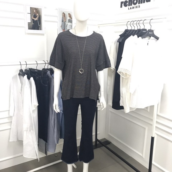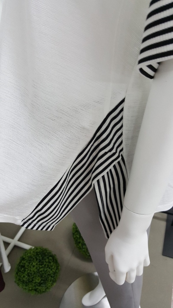26인치 기장의 스트라이프 배색 져지 티셔츠입니다.루즈핏 저지 블라우스 스타일에 스트라이프 배색이 들어가 여름에 입기 좋은 져지 티셔츠입니다.힘 중간 기장으로 와이드 팬츠와 코디하기 좋은 스타일이고, 베이직한 컬러로 나와 다양하게 코디하기 좋은 상품입니다.사이즈는 55, 66으로 진행됩니다.