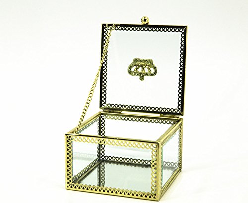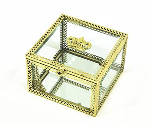 ROSE BUSH Classical crown glass Square Rings Earrings Necklace Display Storage Case Box Gold