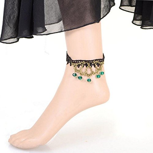 -. Title : Creativelife Women Elegant Black Lace Anklet Green Beads Ankle Bracelet