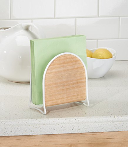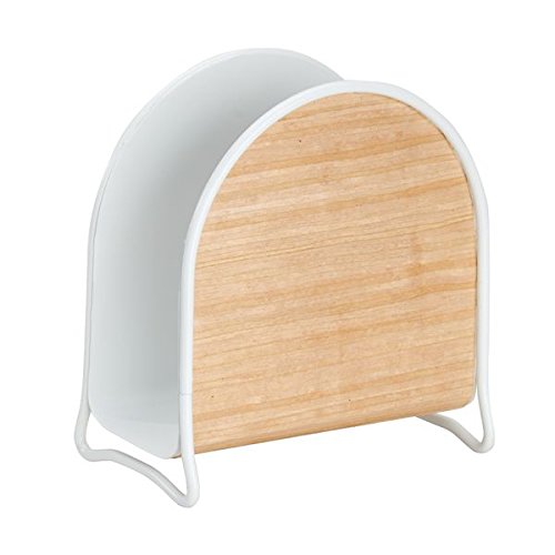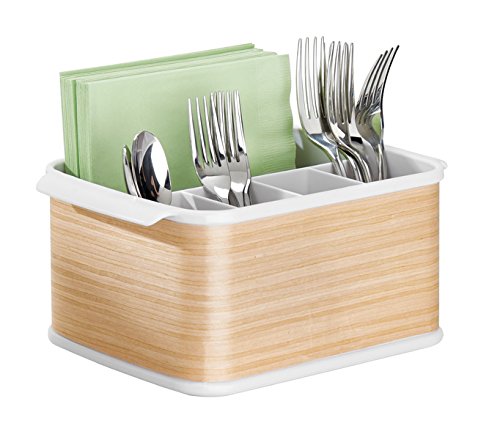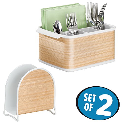 mDesign Kitchen Storage Set, Cutlery Caddy, Napkin Holder - Set of 2, White/Light Wood Finish