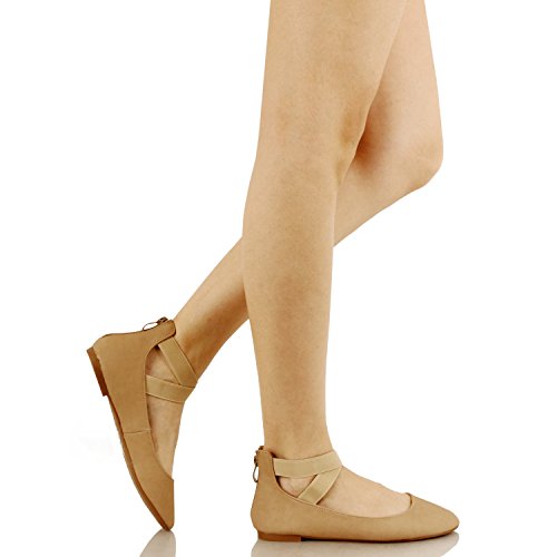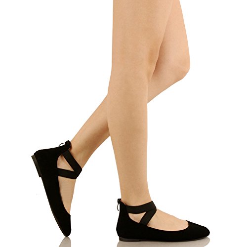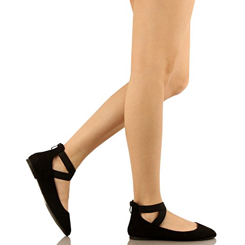| (Guilty Shoes)/Women's/Flats/DIRECT FROM USA/Guilty Shoes Womens Classic Comfort Elastic Crossing Straps - Stretchy Ballerina Ballet Flats Shoes |