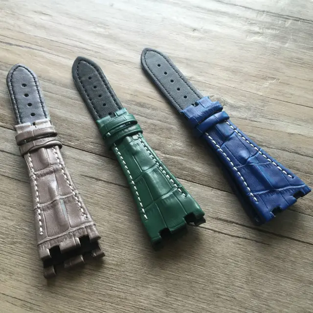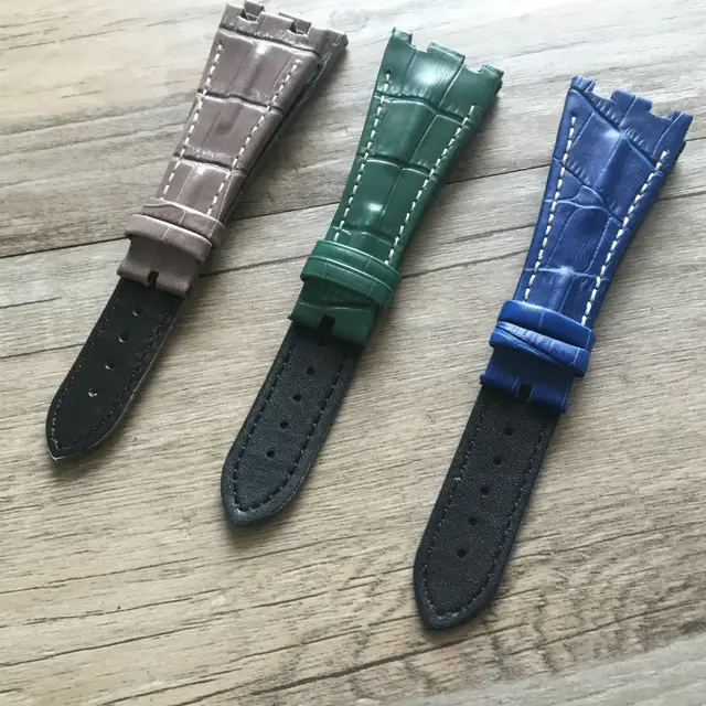 | [해외]TJP 28 미리메터 AP 손목 블루 회색 녹색 정품 가죽 시계 스트랩 벨트 팔찌 AP 로얄 오크 시계 버클 |