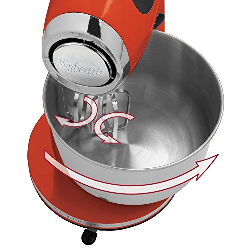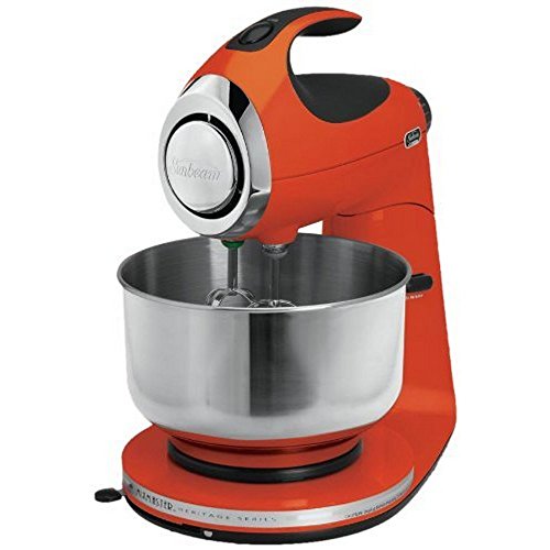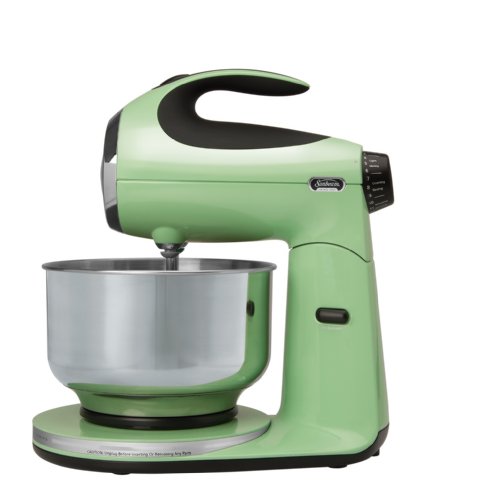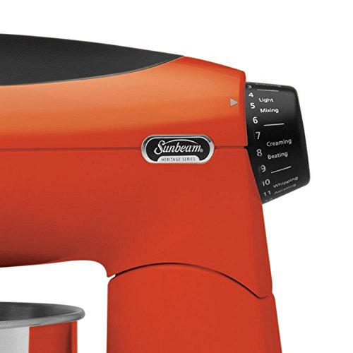 Introducing the new iconic Sunbeam Heritage Series Stand Mixer. This Mixmaster is made with elegant and durable die-cast, all metal construction. Equipped with a powerful 350-watt motor, this convenient stand mixer works well for everything from high-volume holiday cooking and baking to everyday tasks in the kitchen. The appliance offers 12 different speed settings for quickly and precisely mixing ingredients. Other highlights include a turntable base that allows the bowl to turn while mixing, a soft-grip molded handle for a secure grip, and an eject button that releases the attachments.Feature