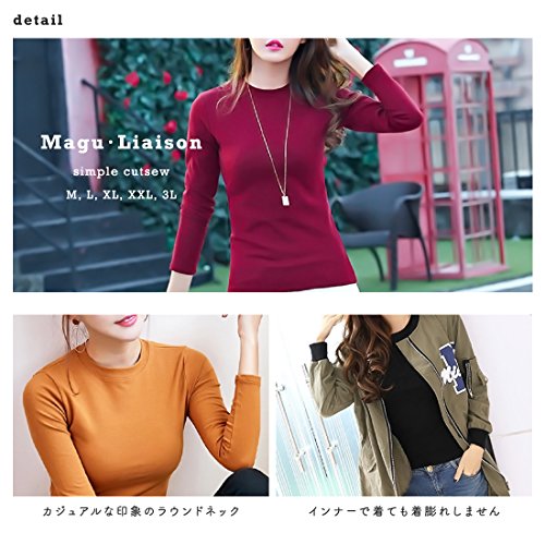 -. Feature : 一年中使えるファッションのマストアイテム、シンプルで着心地の良い、美シルエットな長袖のカットソーです。Amazonランキングでも人気でおススメのオシャレなカットソーシリーズです。ギフト包装もできますので彼女や大切なご家族へのプレゼントや贈り物にもどうぞ。 / 春夏は1枚で着てトップスに、秋冬はインナーとして幅広く着こなせ、シンプルな無地カットソーなのでスクール・通勤・通学・オフィス・ルームウェアまで色々使えて着回し力も抜群です。定番のジーンズ、ダメージジーンズはもちろん、スカートやショートパンツ、トレンドのワイドパンツにも相性バツグンです。 / 小さいサイズから大きめサイズを幅広く揃えており、カラーバリエーションも7色と豊富にご用意しております。お客様のシーンに合わせてお好きなカラーをお選びください。 / 実寸はメジャー採寸の為、若干の誤差が生じる場合があります。着用感が細めのため1サイズ上のご購入をオススメしております。商品画像と実際の色は、撮影時の照明の状況等により若干異なって見える場合がございますので、予めご了承下さい。工場で特別製作しており、弊社(Magu・Liaison)が販売提供させて頂いております。 / サイズ:【M】着丈約58cm 胸囲約81~84cm 肩幅約36cm 【L】着丈約59cm 胸囲約85~88cm 肩幅約37cm 【XL】着丈約60cm 胸囲約89~92cm 肩幅約39cm 【XXL】着丈約61cm 胸囲約93~97cm 肩幅約40cm 【3L】着丈約63cm 胸囲約98~101cm 肩幅約42cm
