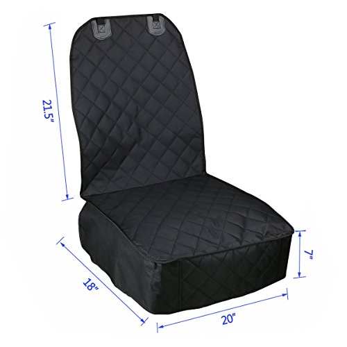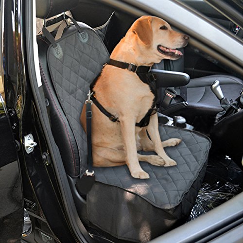 -. Feature : DURABLE FABRIC & SOFT PADDED PET SEAT COVER -- Focuspet front seat cover is made of 600D Oxford Cloth + PP cotton + Slip-proof PVC net to keep the pet seat cover in place and clean even on leather seats and help your dogs stay in place cozily. / WATERPROOF & SCRATCH PROOF - Made with quality heavy duty water resistant oxford fabric, easy to clean and wipe out with a damp cloth. Protect your seat when having fun outdoors,no need to worry the pet scratch the seat. / EASY TO INSTALL - Easily install with quick release clips. Seat anchor can insert to the crevice to fasten the cover, adjustable plastic clips that attach around the headrest in the back to fix cover firmly. Comes with a seat belt (Free Gift). Owing to special design of pet seatbelt, it does not only provide enough room for dogs to stand, sit, or lie down, but it also guarantees your dog's safety in the car. / SUITABLE FOR ALL CARS -- 30" length X 20" width large pet seat cover is suitable for most cars, trucks, automotives and SUVs. Not only for small medium dogs, but also perfect for large dogs. / BEST SOLUTION FOR TRAVELING - With dogs, cats, kids or any other furry friend, against biggest or rowdiest pet's claws, paws, spills, hair, dripping water and dander, a must for individuals with leather seats.