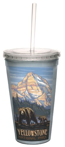 Tree-Free Greetings cc33219 Vintage Yellowstone National Park Bears by Paul A. Lanquist Artful Traveler Double-Walled Cool Cup with Straw, 16-Ounce