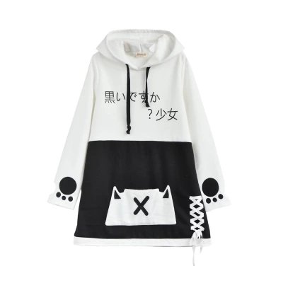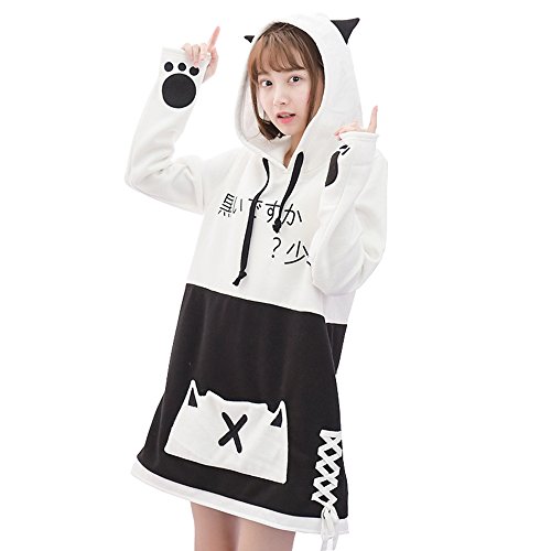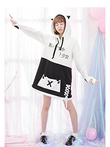 -. Title : レディース パーカー 森ガール トレーナー 長袖 猫 柄 フード付き オリジナル 春 秋 冬 シンプル ゆったり プルオーバー