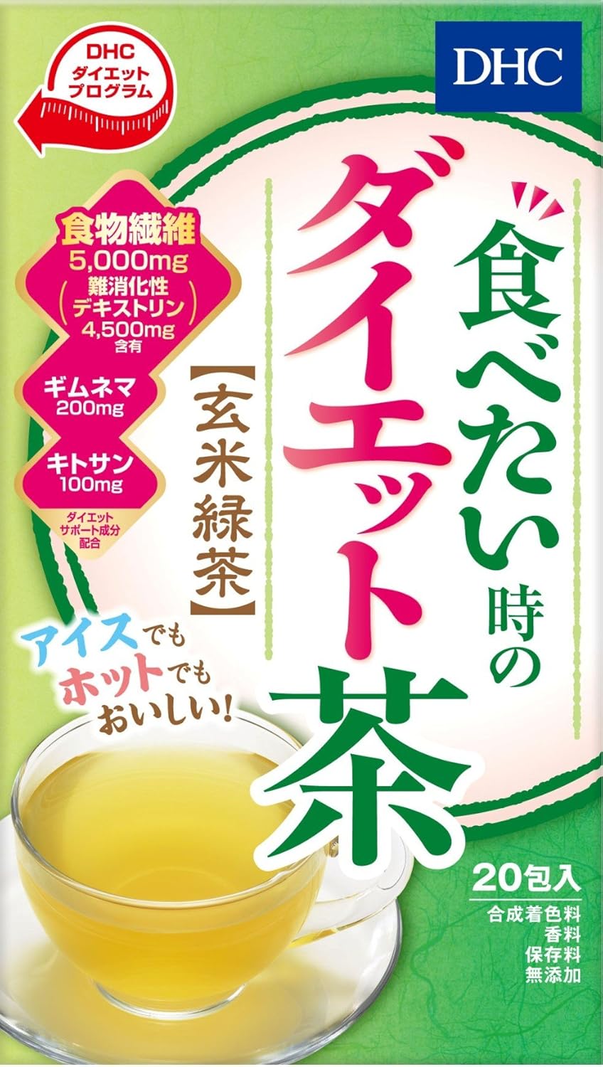 スタイルが気になるけどごはんやパン、脂っぽいもの、甘いものがやめられない。ガマンせずに好きなものを食べたい。そんな方を応援する「DHC食べたい時のダイエット茶 玄米緑茶」食物繊維(難消化性デキストリン)をはじめ、ギムネマ、キトサンといったダイエットに役立つ成分を配合した機能性ダイエット茶です。