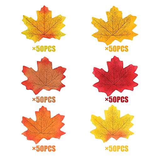 WXJ13 300 Pieces 6 Colors Artificial Maple Leaves Fall Leaves for Weddings, Party, House Decorating