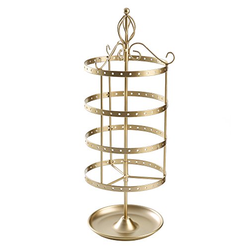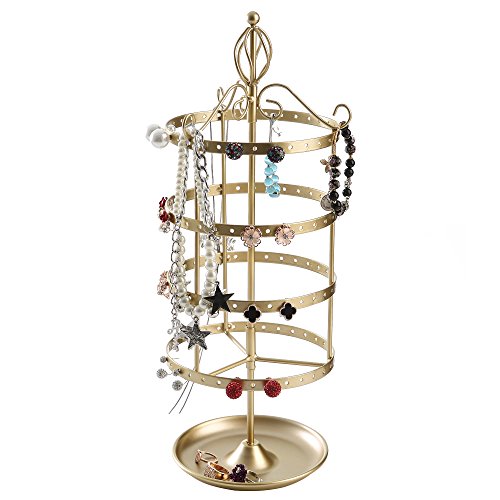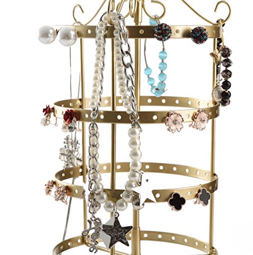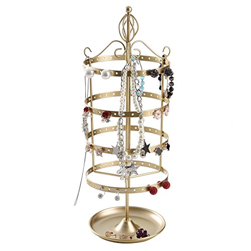 4 Tier Rotating Jewelry Tree Organizer Stand Tower w/ Ring Tray for Necklace & Earrings, Gold