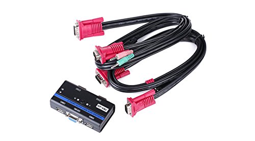 E-SDS 2-Port USB KVM Switch with Audio and Mic Support, KVM Cables Included, VGA Resolution up to 20481536 CV0205