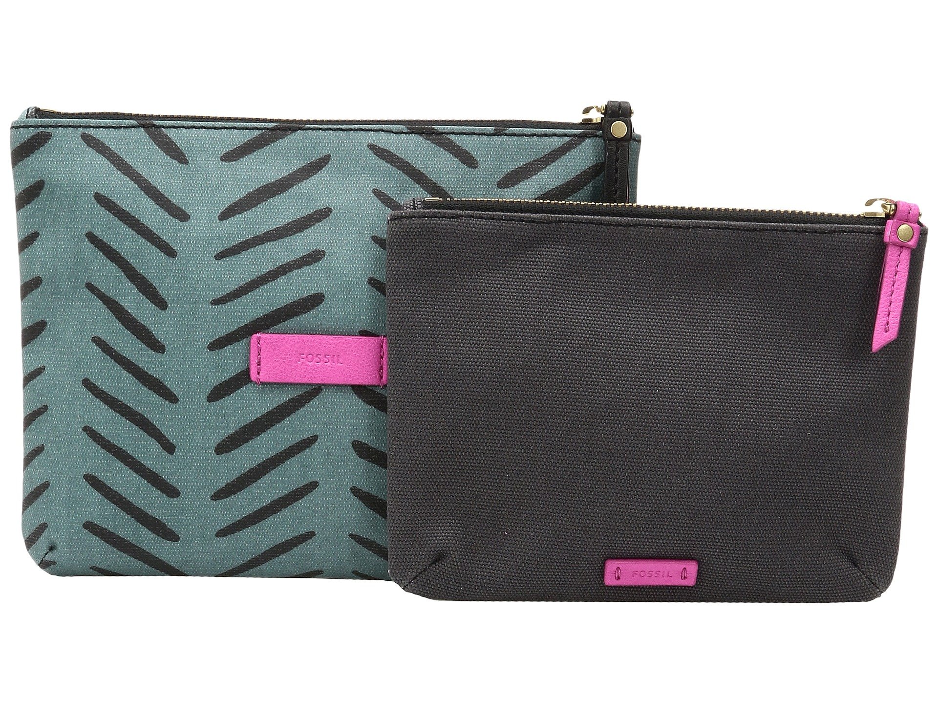 | Product Information SKU: #8849753A colorful style that can make getting organized fun, the Fossil? Keely Double Pouch Gift.Made of synthetic material.Zipper closure.Includes two pouches.Signature logo embossed detail in front.Lining made of textile.Imported.Please note, the hardware color and interior lining may differ from the color shown in the photo.Measurements: Bottom Width: 8 1?4 in Depth: 1?2 in Height: 6 1?2 in Weight: 5.1 oz |