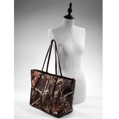 -. Brand : Realtree ® Bags & Wallets -. Color : multicoloured -. Department : womens -. Feature : Style: Bag - Totes & Shoppers / Material: Made of high quality faux leather / Zippered top opening, Silver tone hardware, Zippered back pocket / Fully lined interior includes inside side zippered pocket, center zippered compartment, and cell phone pouch / Approx. Size: 20"W x 11"H x 6"D -. PackageQuantity : 1 -. ProductGroup : Shoes -. ProductTypeName : HANDBAG -. Title : Realtree Wide Carry-All XG Camouflage Tote Bag with Thin Shoulder Straps